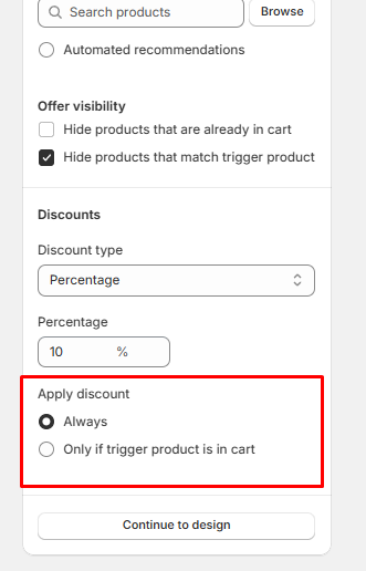1️⃣ Upsell "Apply discount" feature set to "Only if trigger product is in cart"