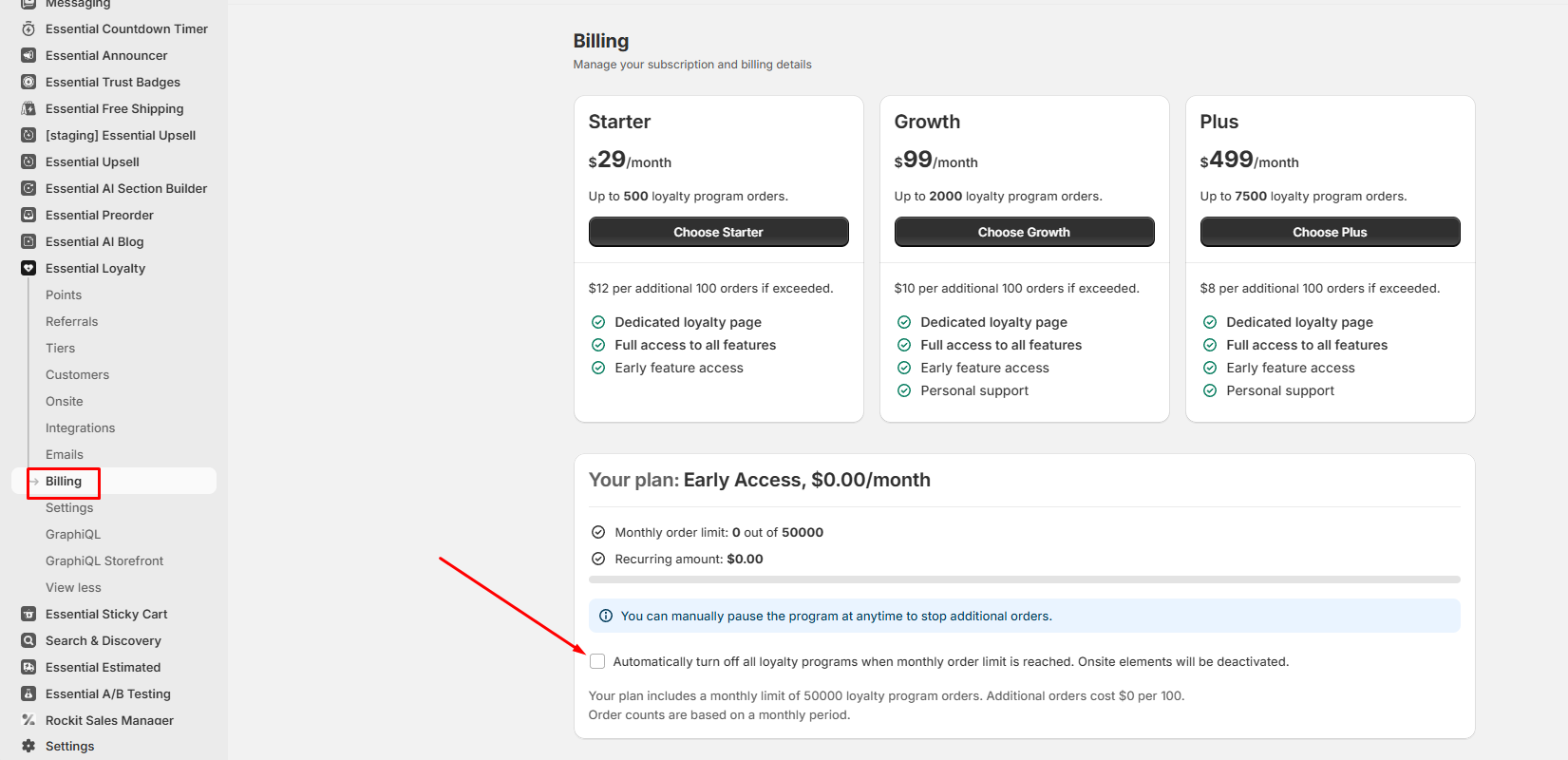 How Pricing Plans Work in Essential Loyalty App