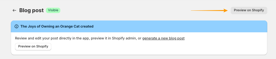 Important: Once a post is generated, it is sent to your Shopify admin as a "Hidden" draft. You must manually set it to "Visible" within Shopify for it to appear on your website.