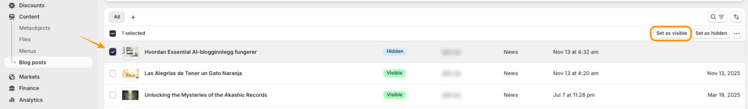 How to Manage Blog Post Visibility in Bulk on Shopify