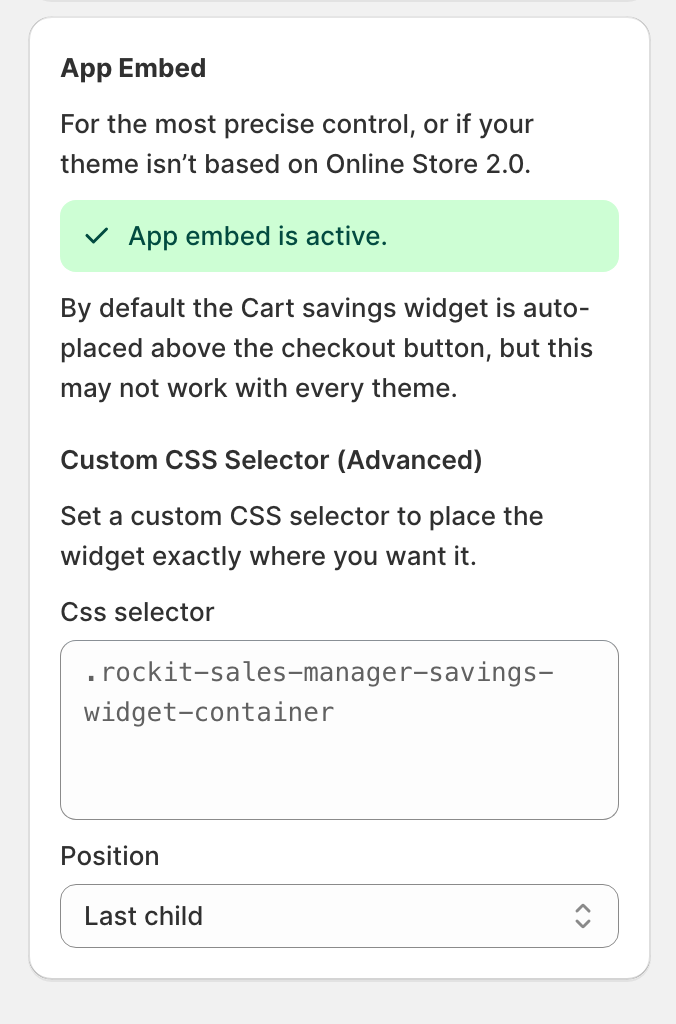- Optionally, use a custom CSS selector to control the exact placement
