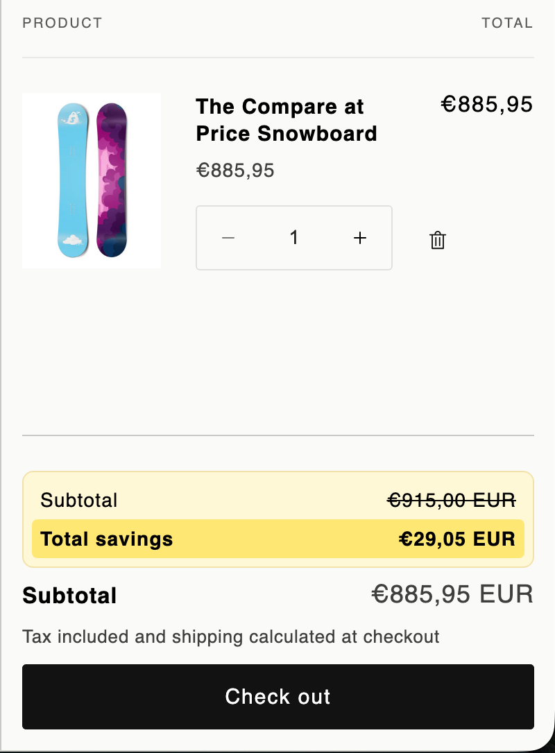 That’s it! Your customers will now clearly see how much they’re saving at checkout 🚀