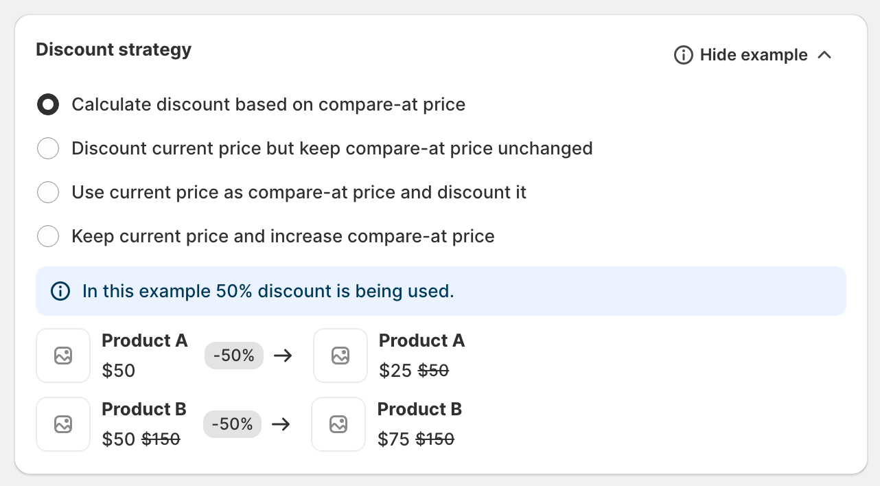 - Calculate discount based on compare-at price (recommended)