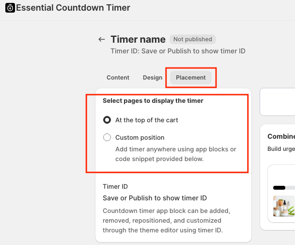This article explains how to place the Countdown Timer in the cart and what options are available.