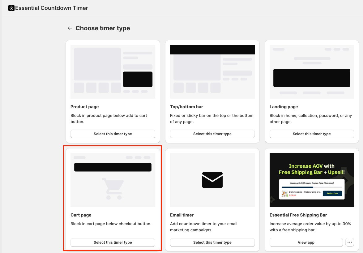 Adding a Countdown Timer to your cart helps create urgency right before checkout, encouraging customers to complete their purchase. Essential Countdown Timer allows you to place timers directly in the cart page or cart drawer, depending on your setup.
