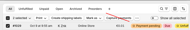 You can track your preorder payments directly from the Shopify Orders dashboard by filtering orders by Payment Status:
