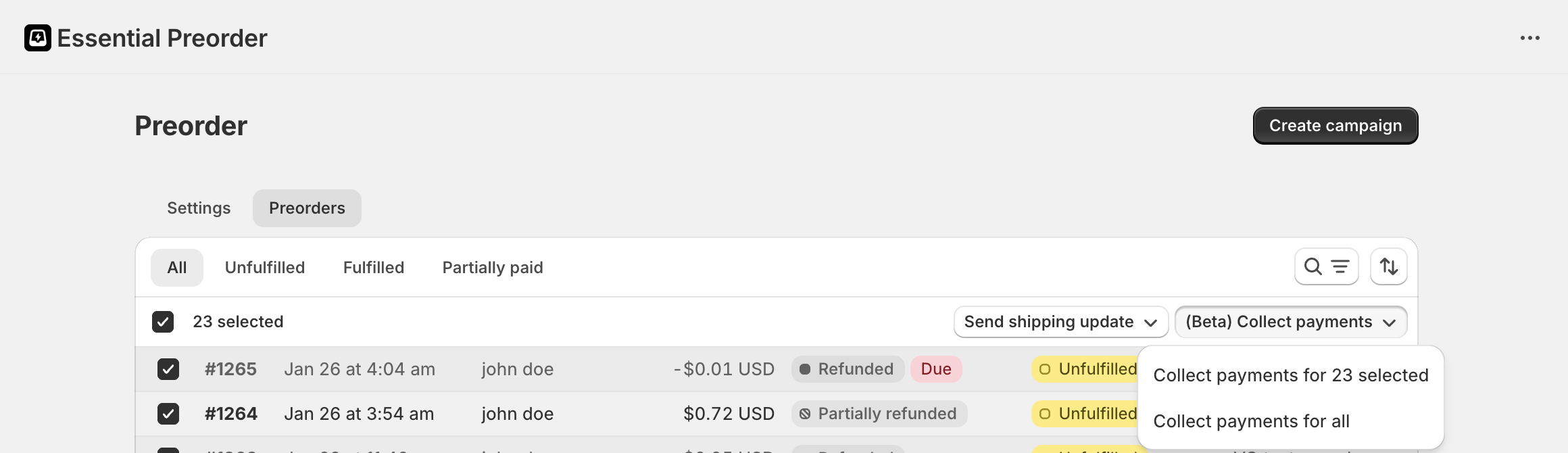 - You can set different partial payment amounts for different products by creating multiple preorder campaigns.