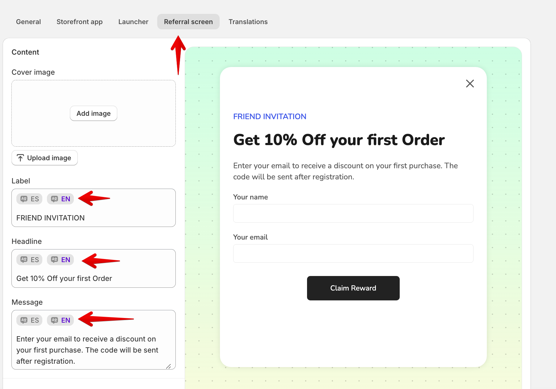 Inside the same settings area, you’ll find the Referral Screen tab.