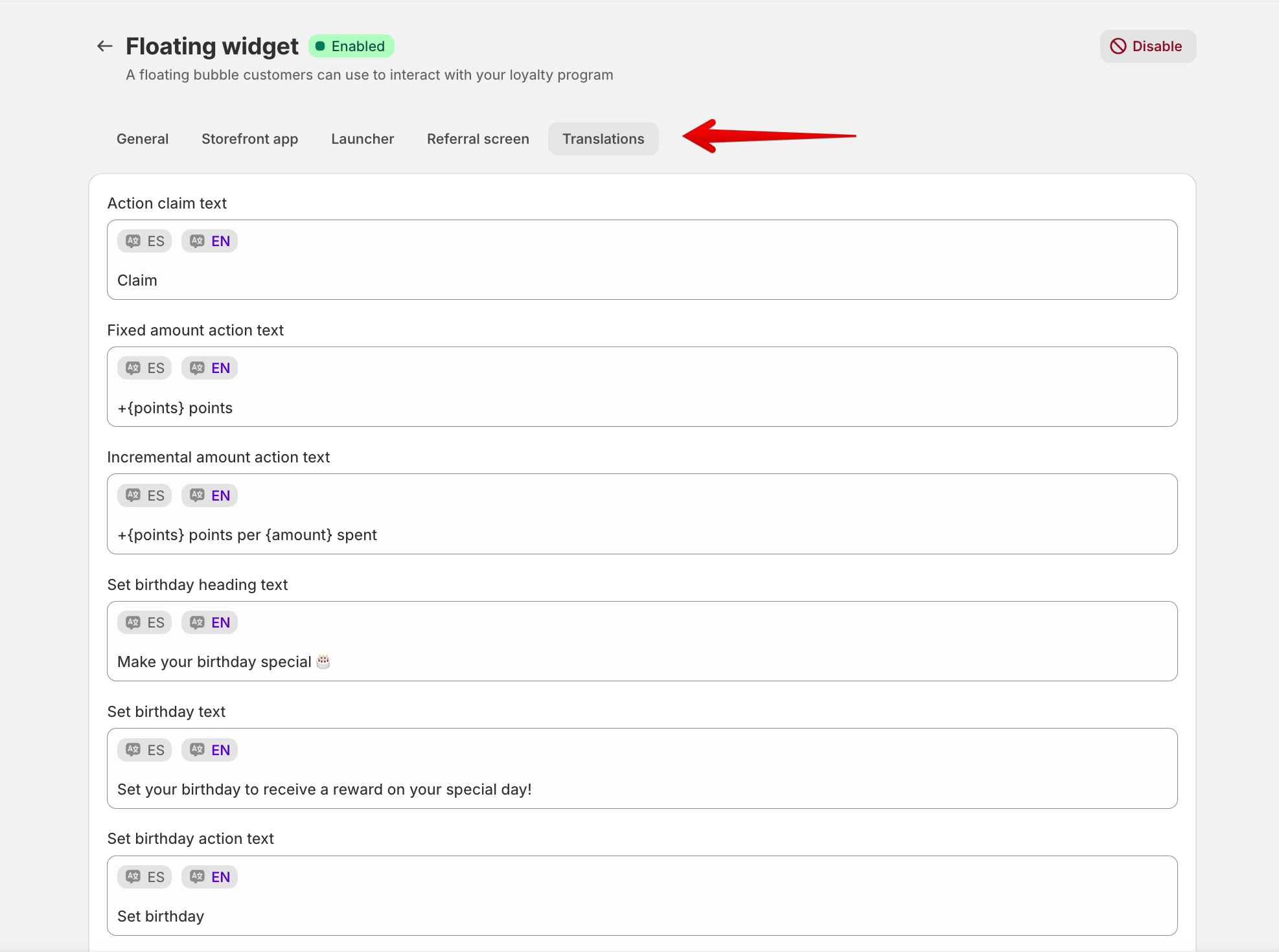 How to Translate Your Loyalty Widget & Dedicated Loyalty Page