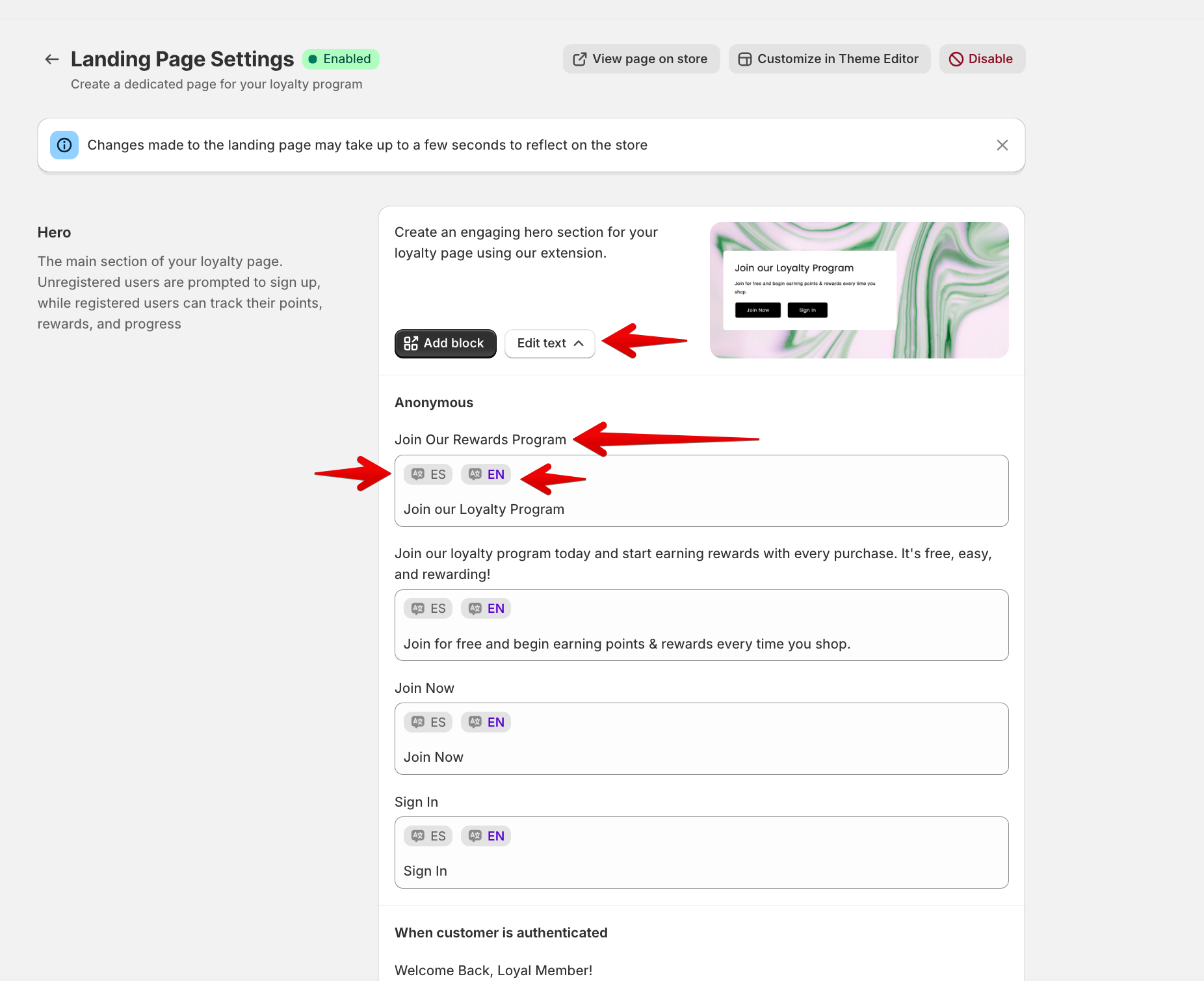 4️⃣ Dedicated Loyalty Page Translations (App Blocks)